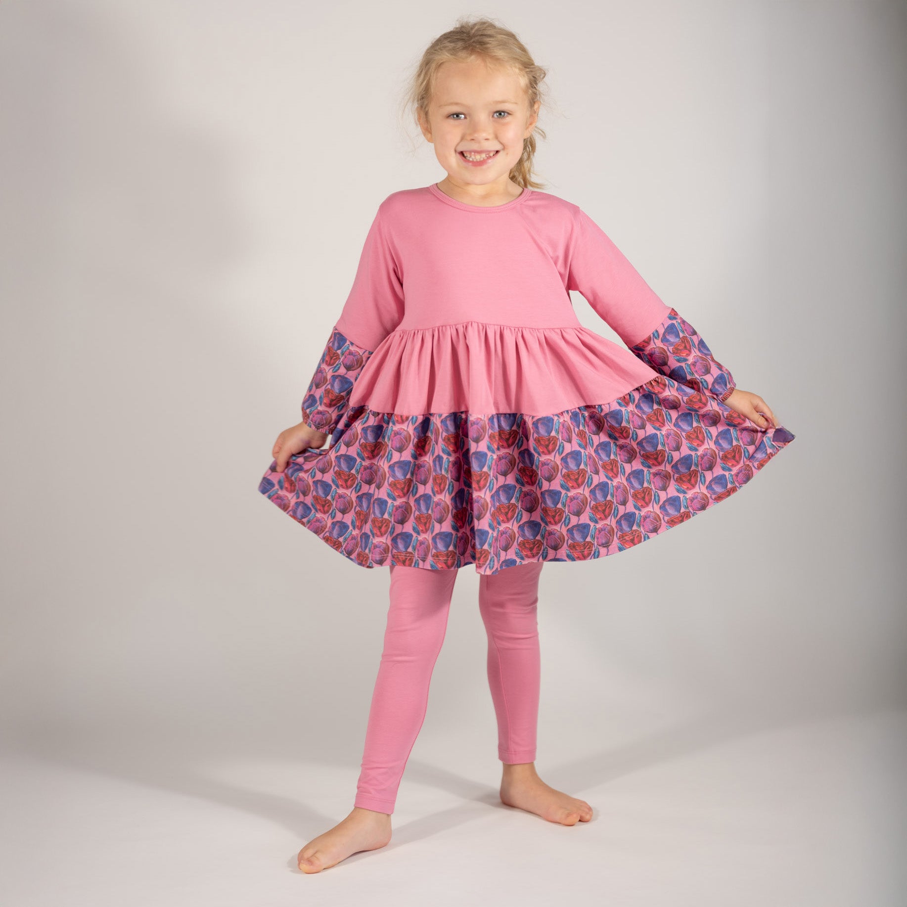 Stylish Twirly Girl Dress: Features a fun and flowy twirl skirt that moves beautifully, paired with soft leggings for added warmth and flexibility.
